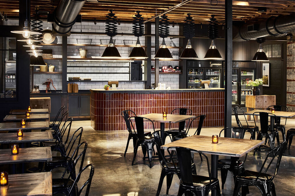 Columbia Plateau Brick by Summer Williams, seen at Blossom Hill BBQ & Burgers. As fast-casual dining options continue to flourish, this interior design offers guests a swanky and elevated casual dining experience.