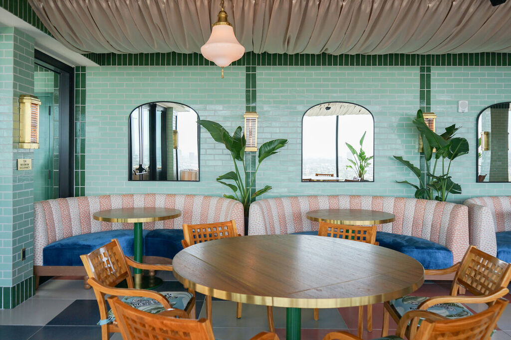 Spruce Gloss, Ember & Tusk 4″ Triangle by 64North, featured at LA Plaza Cocina in Los Angeles. The museum’s interior celebrates the vibrant culture of Mexican culinary traditions.