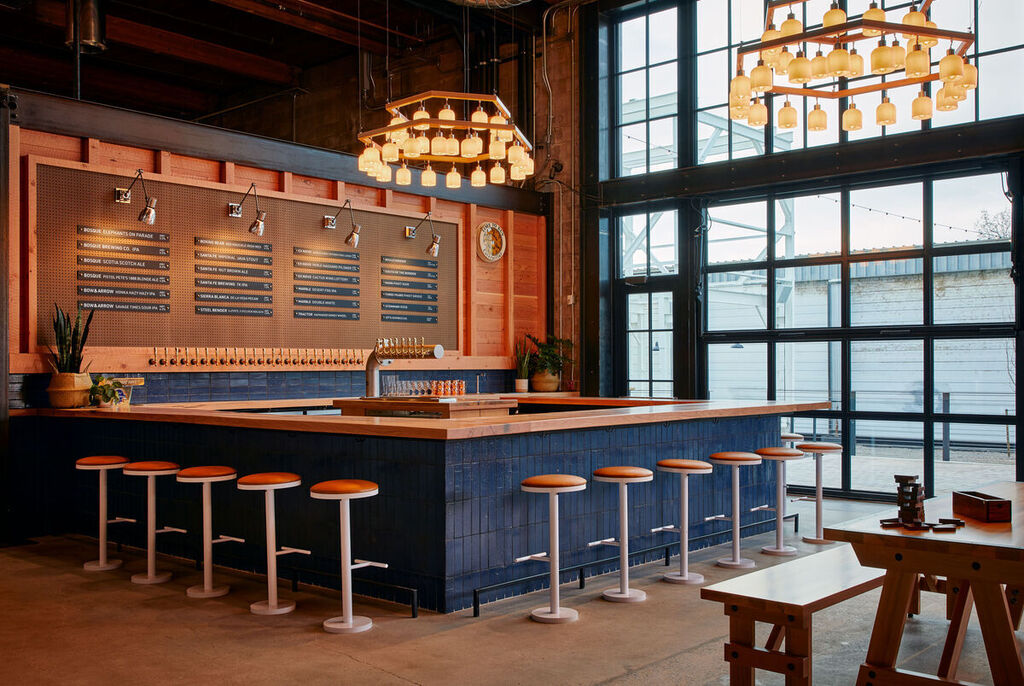 Blue Ridge Brick by ISLYN STUDIO, showcased in Albuquerque’s Paxton’s Taproom. This bar’s rustic yet refined interior sets the stage for patrons to enjoy their favourite beverages.