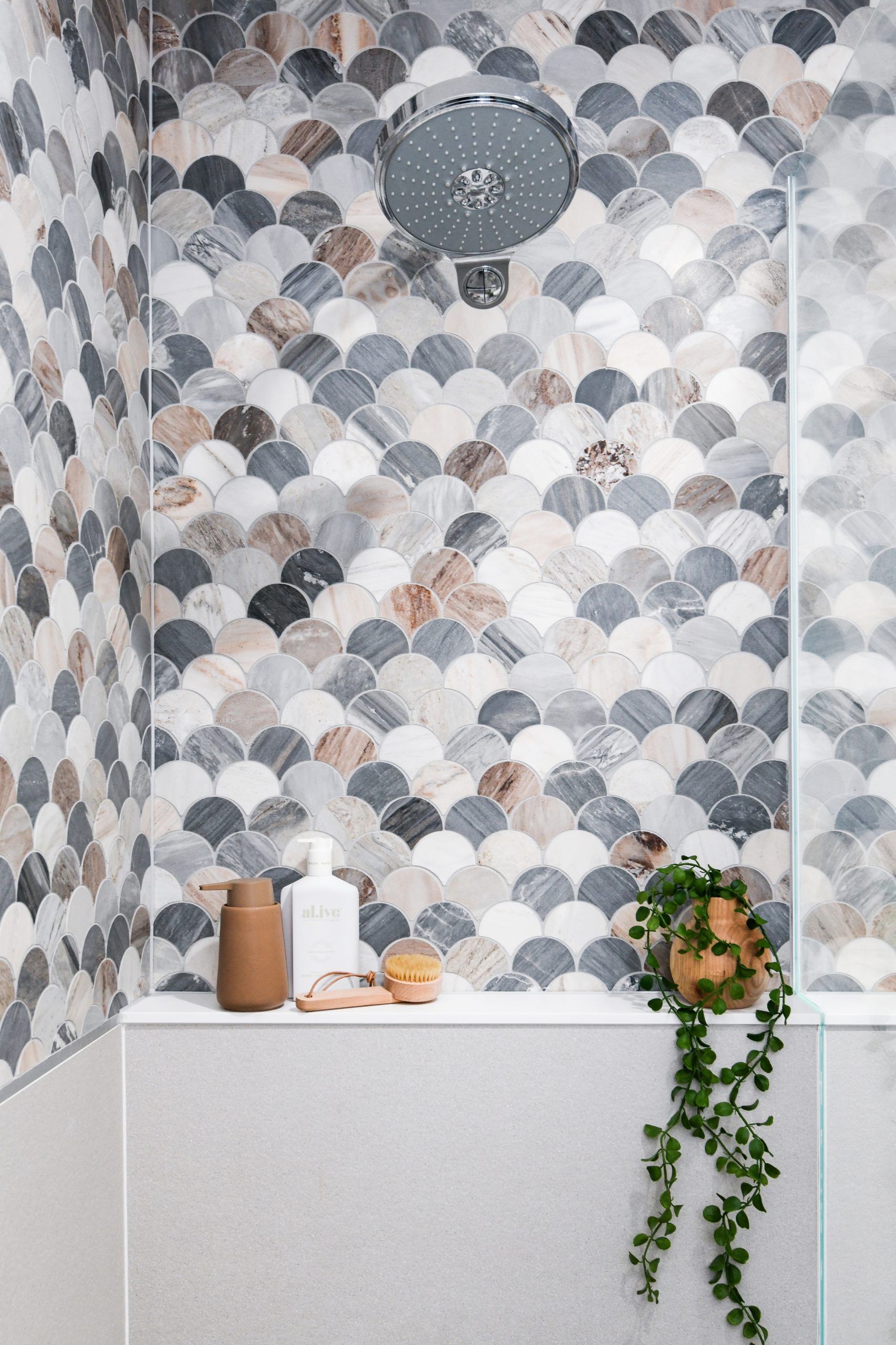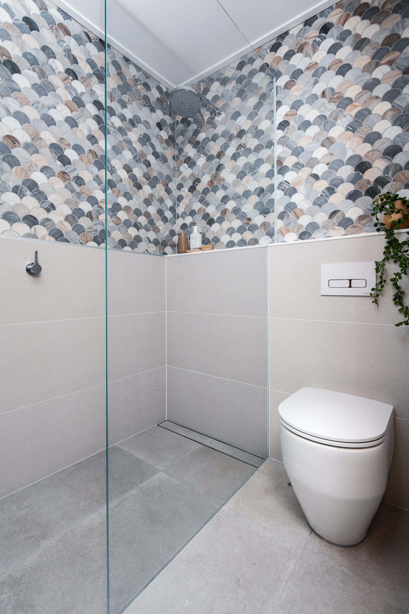 With a design brief to create a family bathroom with character and personality, Robyn Cote selected our Azure Blend Marble mosaic to give impact to this functional space. Complimented with an Ivory Limestone-look porcelain this beautiful bathroom has definitely hit the mark.